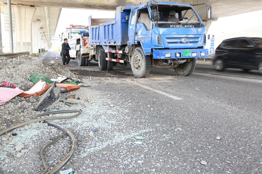 3月19日12時50分許,葛君和護士汪穎、陳素芬、尹添樂訓練結束坐車返回醫院。車剛駛到小港街道下邵公交站路口,正好遇上一輛裝滿石子的貨車側翻,擋風玻璃碎了一地,駕駛員倒在離車頭約2米遠的路上,滿臉是血。