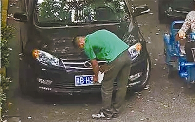 到了1點35分,沈某再次回轉。不過這次,他手里好像握了一樣東西。接下來的動作便讓人詫異了,只見沈某看了一眼周邊之后,便用手里的餐巾紙將車牌的一側號碼遮擋了起來。