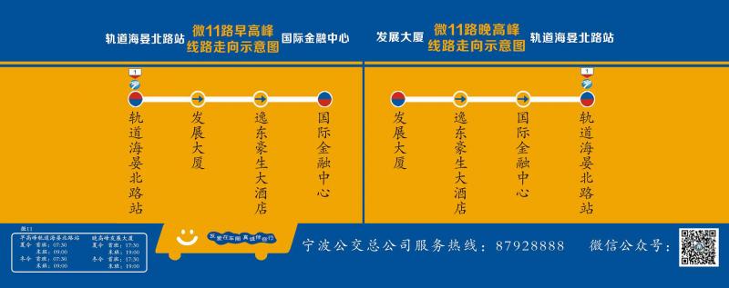 從今天起,寧波公交對微11路進行加密班次和延時服務,以更好的滿足中央廣場金融片區周邊上班族的乘車需求。