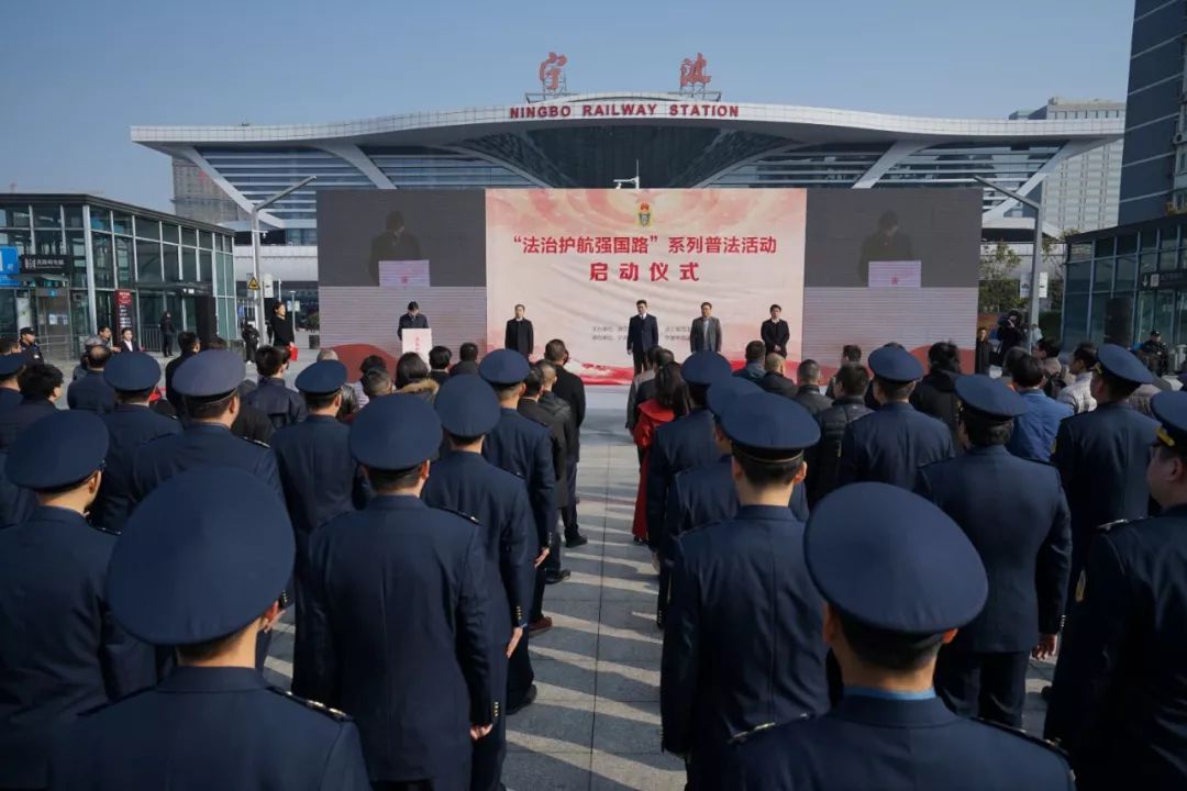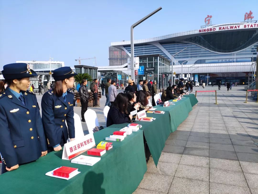 冬日里的鐵路寧波站南廣場客流如潮。在第二個全國“憲法宣傳周”之際,昨天上午,省交通運輸廳聯合省司法廳,共同舉辦的交通運輸普法宣傳現場會在這里,正式啟動“法治護航強國路”系列普法活動。