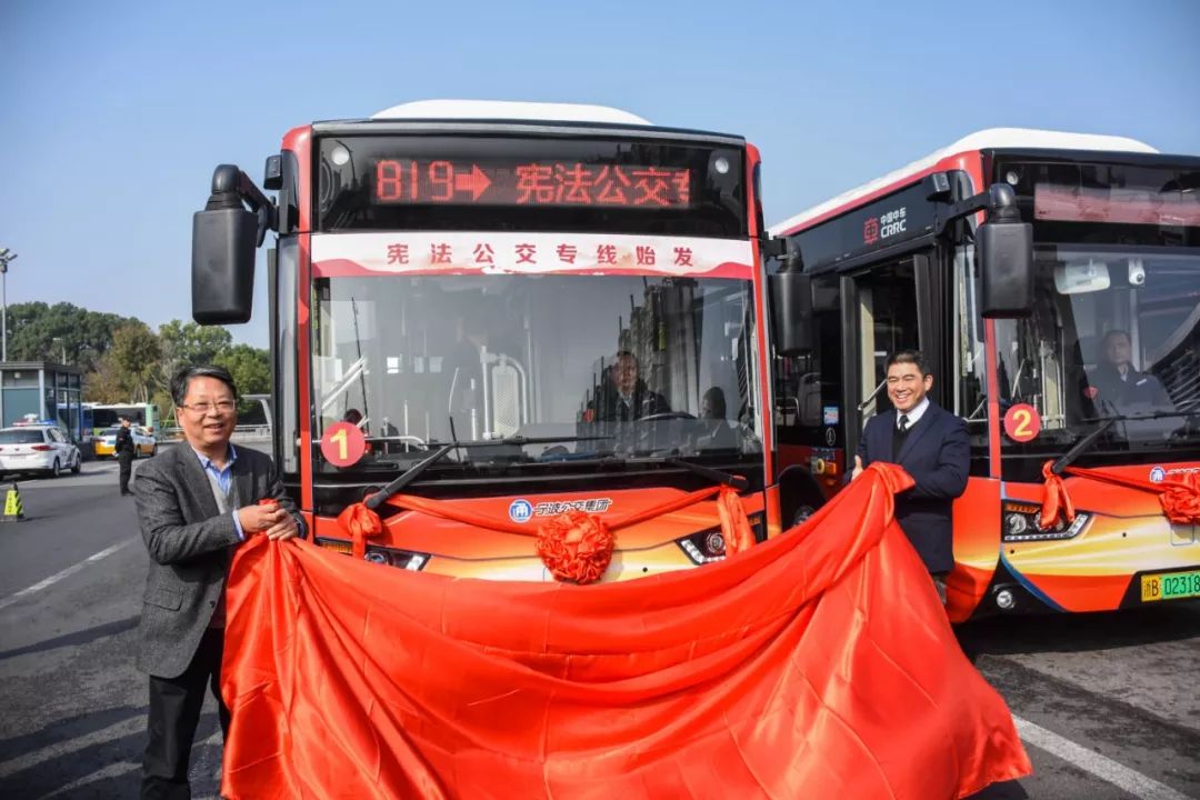 “憲法公交專線”始發,無疑將為寧波城市增添一抹亮麗的“憲法紅”。