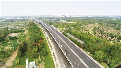 道路設計充分考慮了沿線地形地質特征和環境條件,加強交通與沿線生態景觀的一體化設計,做到工程品質與自然環境有機統一,并以金色系作為綠化景觀主旋律,沿途一整排2.5米高的黃金槐,層次分明,被稱為“金色大道”。