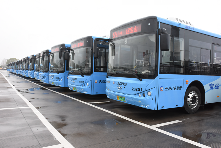 近日,21輛印刷著寧波公交集團的氣電混合動力公交車齊刷刷排成一排,在寧波公交集團下屬永安公司綜合場地內全新亮相。這是自2000年541路開通以來,第四代公交車正式上線。