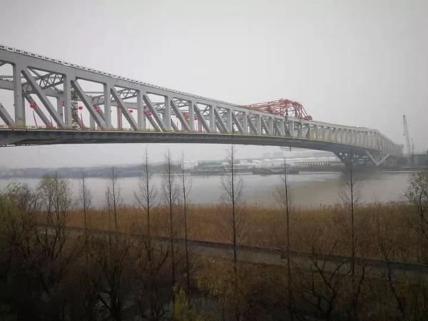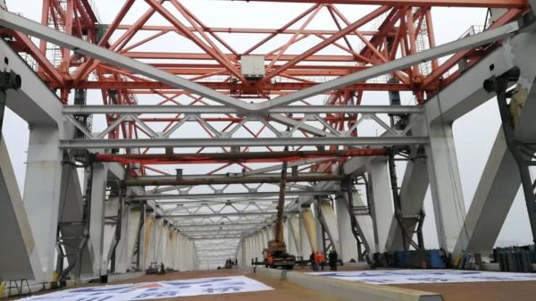 市住建局三官堂大橋項目負(fù)責(zé)人夏偉杰說,1月10日主橋鋼桁梁吊裝到位,11日上午9點完成姿態(tài)調(diào)整,13日晚上4個主要的桁口焊接到位,14日上午進行橋面板的焊接。