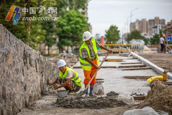 連日來,海曙區廟洪路(徐家漕路—中山西路)道路工程現場,施工人員正在搶抓工期進行收尾工作,為下月通車創造良好條件。