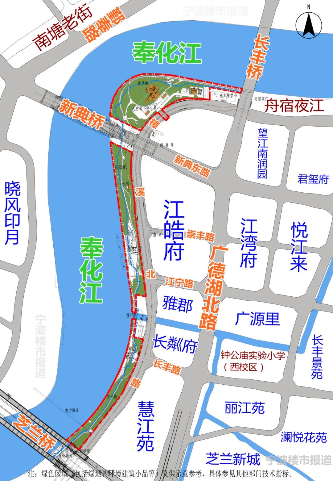 按照此前鄞州資規部門批前公示方案,這一段濱江休閑帶過長豐橋后可接舟宿夜江,過在建的新典橋后,一直往南延伸到芝蘭橋。對于長豐區域眾多已建、在建的小區居民,以后將可以多一個江邊漫步的好去處了!