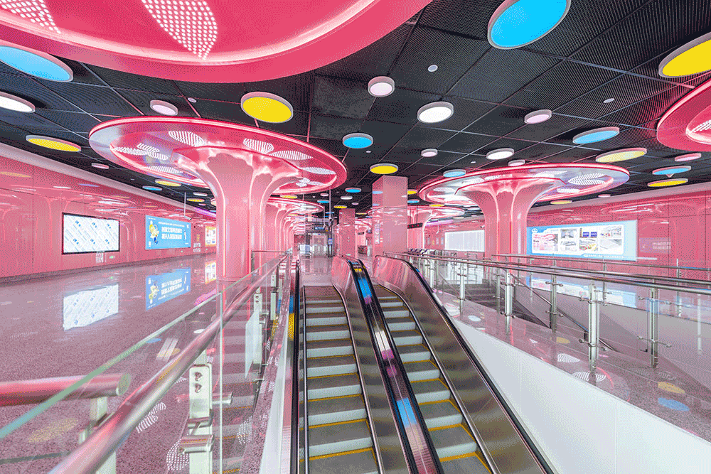 車站裝修設計以“璀璨甬都”為文化主題,打造“一線一景”“一區(qū)一色”的七彩車站。民安東路站以“線性曲線”為元素,勾勒繁星點點的美妙星空;錢湖南路站以“繁花綻放”為主題,寓意莘莘學子活力四射的精神面貌;廟堰站以“水”元素展開設計,凸顯靈動的文化創(chuàng)意氛圍。5號線列車沿用靛藍色主色調(diào),車廂內(nèi)裝創(chuàng)意源自“水韻寧波、揚帆起航”,開放式司機室,將給市民帶來全新的乘車體驗。