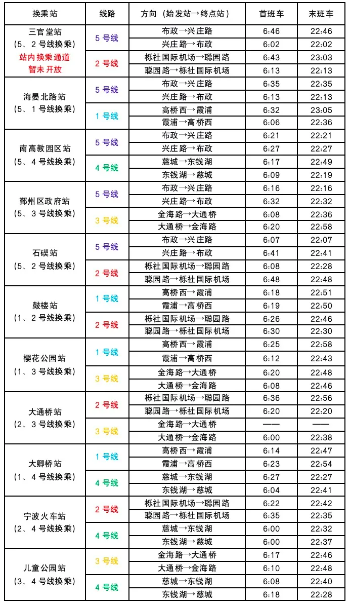 同時,結合5號線一期開通的契機,線網(wǎng)換乘銜接進行了適當優(yōu)化,列車到發(fā)時間略有調(diào)整。