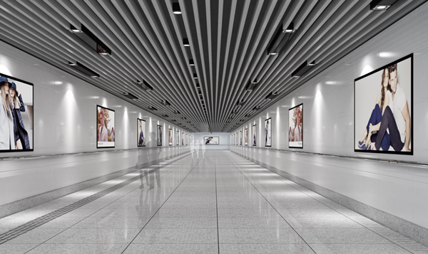 地道共設置南北2個出入口,每個出入口設置上行扶梯一部,并考慮無障礙設施,各設置升降電梯一部。出入口通道上方設置鋼結構雨棚,整體以白色調為主,美觀與實用性兼得。