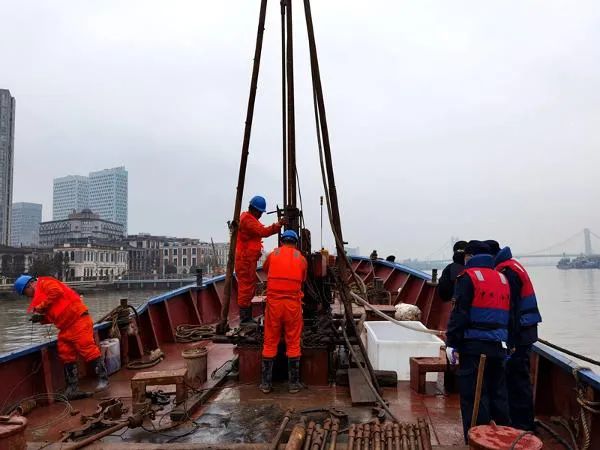 為了加快推進本次作業(yè),寧波軌道交通前期多次與寧波海事局通航管理處及三江口海事處對接溝通,于春節(jié)前取得施工許可證。節(jié)后上班第一天就組織勘察單位先后完成安全教育培訓(xùn)、施工前交底、船舶安全檢查等各項準備工作,把握春運期間大部分甬江通航船舶停航過節(jié)的契機,于2月11日正式啟動勘察工作,在一周時間完成水上勘察作業(yè)。