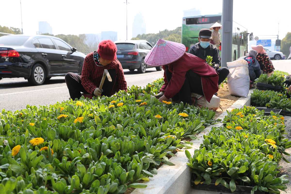 近些天來,鄞城集團每天安排約300人次投入施工,瀝青用料累計2000余噸,人行道面層鋪設約2200平方米,行道樹及隔離帶綠化種植約1萬平方米。