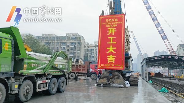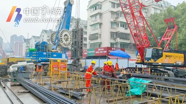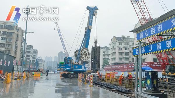 麗園北路站位于海曙聯(lián)豐路與麗園路交叉口。開工首日,記者在現(xiàn)場看到,數(shù)十輛機(jī)械設(shè)備有序作業(yè),細(xì)雨中百余工人正開展地連墻施工,意味著車站全面施工正式開始。