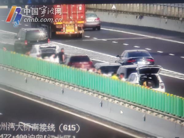 事情要從6月17日說起,當時沈海高速往寧波方向前洋互通轉臺州方向匝道口處,也就是距寧波北收費站兩公里的地方,因車流量過大,車輛之間跟車過近,追尾事故就這樣發生了。而且,這一出事故,一下就是兩起,涉及五輛小車。