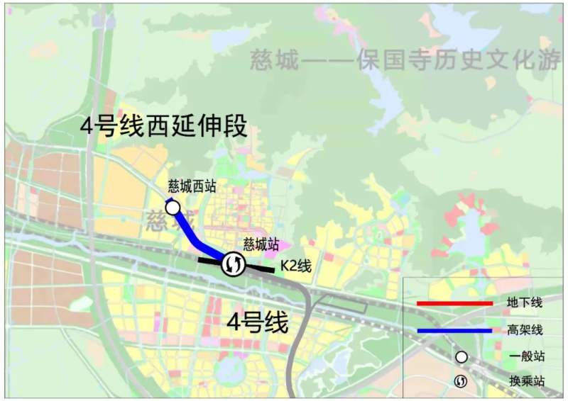 為進(jìn)一步促進(jìn)慈城區(qū)域的發(fā)展,按照第三期建設(shè)規(guī)劃批復(fù),軌道交通4號線西延段設(shè)一站一區(qū)間,從4號線慈城站引出后,沿寧慈西路向西北方向敷設(shè),敷設(shè)至寧慈西路與廟灣路交叉口,在路口東側(cè)設(shè)置終點(diǎn)站慈城西站,線路全長約1.77公里。
