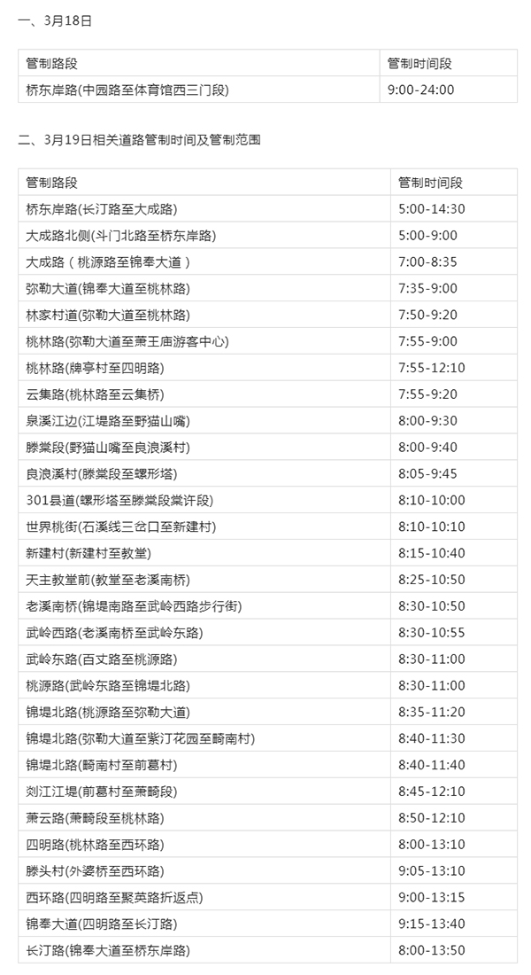 2023年3月19日因奉化海峽兩岸桃花馬拉松賽事,奉化公交線路按時段階段性停運共計32條線路具體如下: