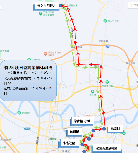 特54秋日登高采摘休閑線(公交甬港新村站至公交九龍湖站)
