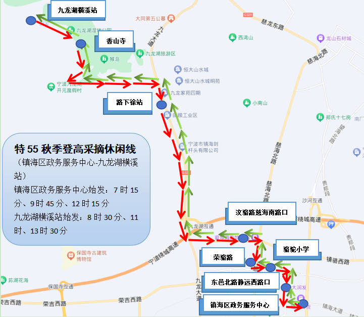 特55秋季登高采摘休閑線(鎮海區政務服務中心-九龍湖橫溪站)