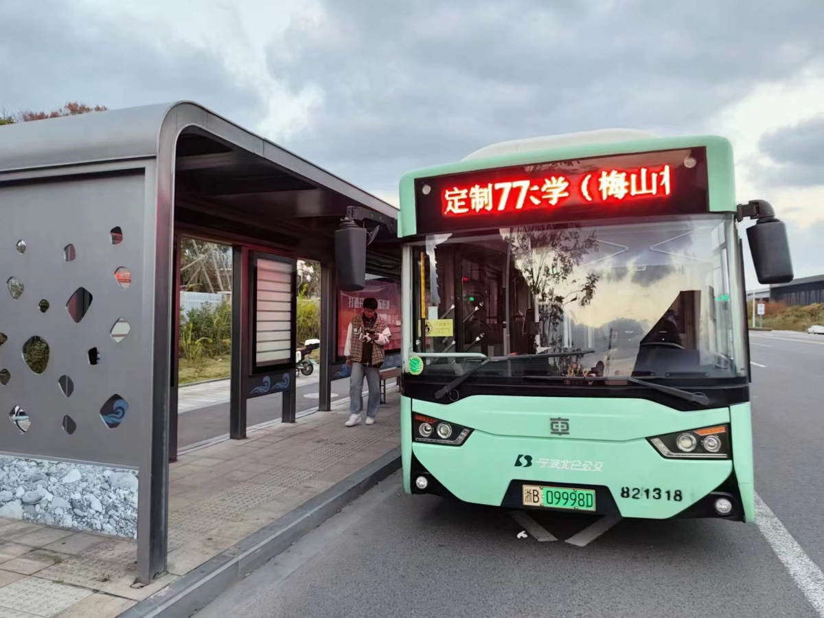 從寧波大學(梅山校區)始發,經停梅山濕地公園、觀海路明月路口、觀海路碧云路口、港口博物館等春曉核心地段,最晚運營到22時。此路公交車方便師生及周邊市民前往梅山紅橋、商業中心等場所購物休閑,為學生外出提供安全快捷的交通保障,也助推春曉的夜市經濟。