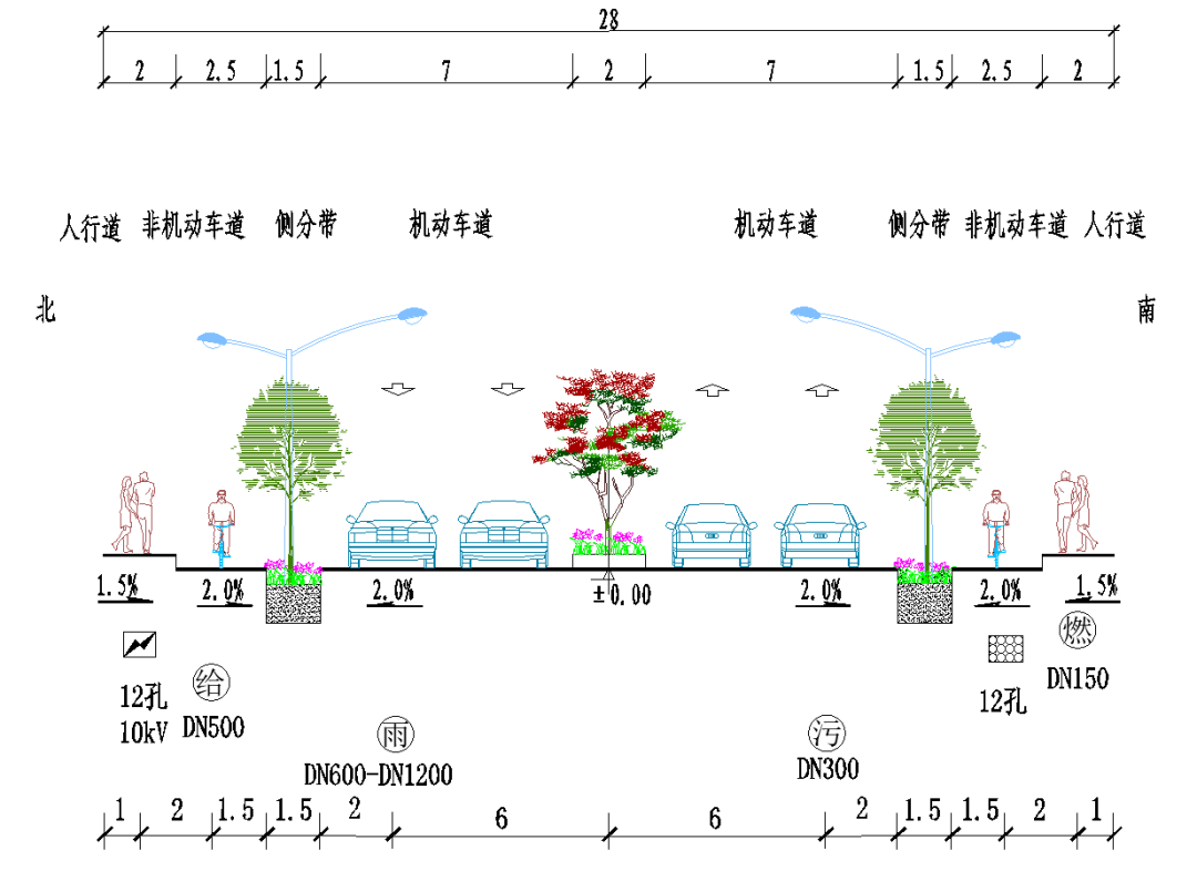 道路標(biāo)準(zhǔn)橫斷面圖。