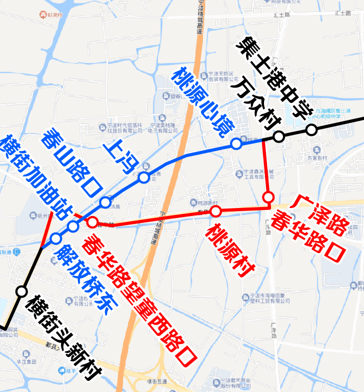 1.按原線運營至望童路鄞縣大道口后,改走鄞縣大道、橫街南路,橫街南路望童路口后恢復(fù)原線運營至望童路橫街環(huán)鎮(zhèn)東路口后,改走橫街環(huán)鎮(zhèn)東路、春華路、廣澤路,廣澤路望童路口后恢復(fù)原線運行。