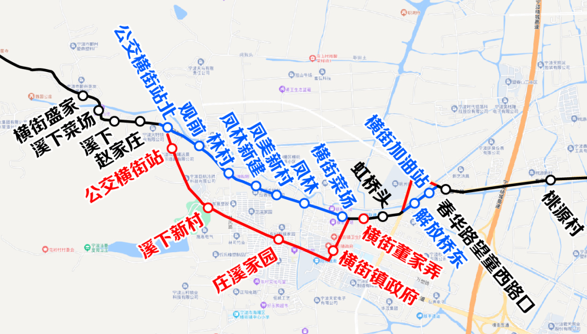 3.單向臨時增設(shè):公交橫街站、溪下新村(日月星養(yǎng)老院)、莊溪家園、橫街鎮(zhèn)政府、橫街董家弄、春華路望童西路口、桃源村、廣澤路春華路口站點。