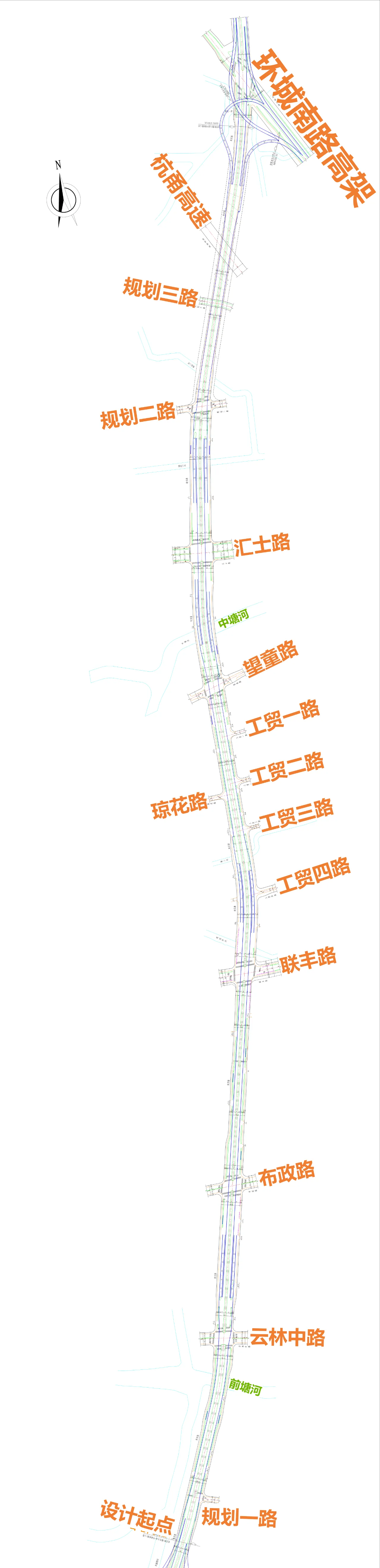 鄞州大道-鄞城大道段:北起鄞州大道,南至鄞城大道,全長約7.9公里,工程擬采用“高架快速路+地面主干路”的建設形式。項目估算總投資97.17億元。