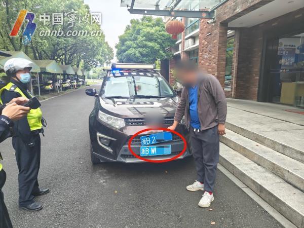 事情發生在4月22日。當天下午3點50分許,在江北區河東路上,交警開展例行巡邏時,發現一輛停靠在路邊的車輛前后號牌不一致。