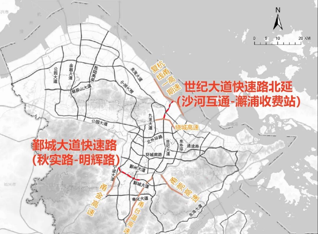 2條快速路,分別是世紀大道快速路北延(沙河互通-澥浦收費站)鄞城大道快速路(秋實路-明輝路)