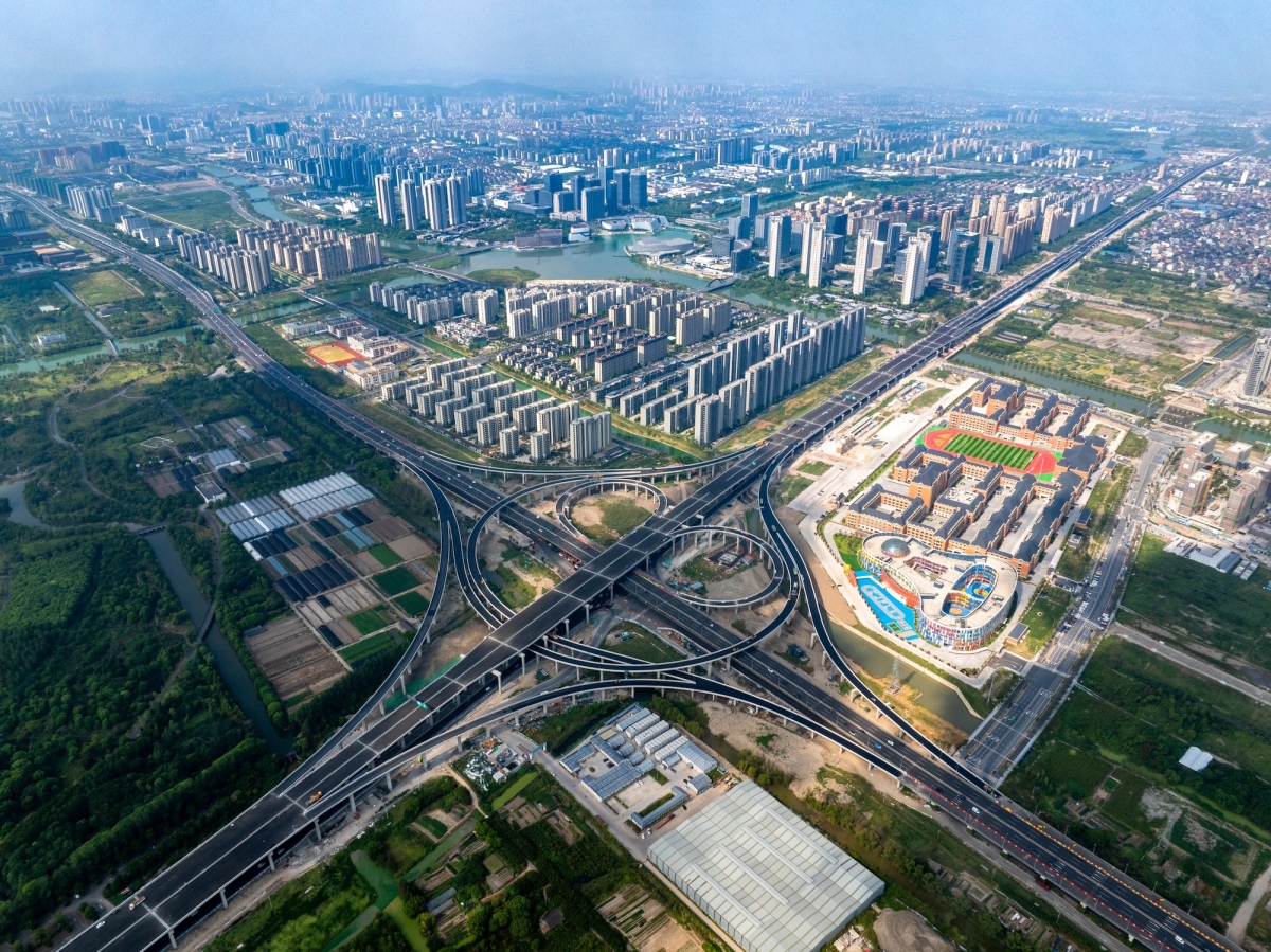 記者從慈溪市交通運輸局了解到,隨著中橫線高架與勝陸高架互通樞紐瀝青面層攤鋪完成,在建的中橫線快速路(一期)主線高架橋、樞紐互通及地面機動車道主體工程已全部完成,這條城市快速路進入最后沖刺階段,通車在即。