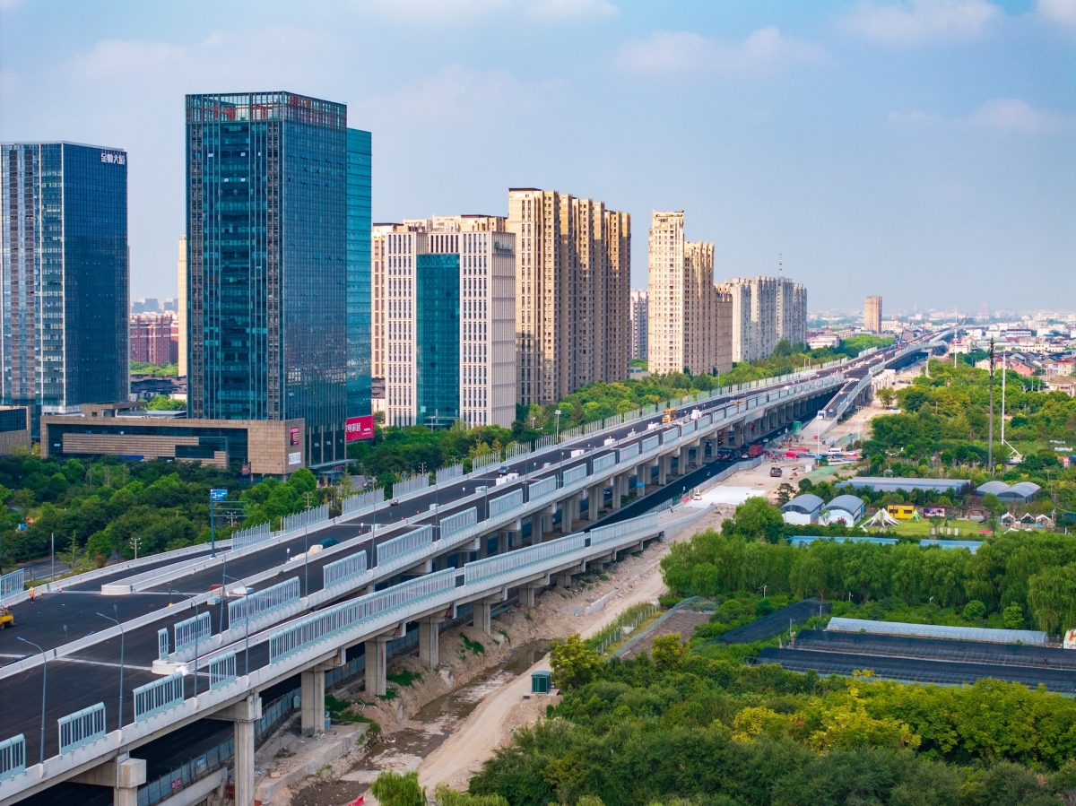 中橫線快速路(一期)工程自2021年10月份開工建設以來,于今年1月完成主線高架橋貫通。上半年,高架橋面混凝土鋪裝、護欄施工等橋面系施工緊鑼密鼓;5月地面道路已完成中間行車道的改造;7月完成高架主線瀝青鋪筑工作,8月完成防撞護欄澆筑工作。