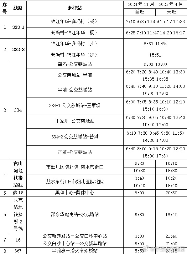 寧波公交集團發布消息,從11月1日起,寧波公交開始實行冬令時刻,部分線路首末班時間進行調整。具體如下: