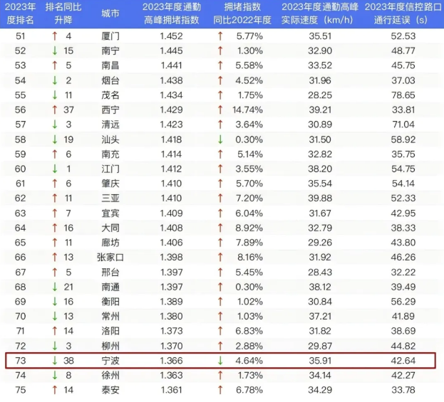 ▲根據百度地圖發布的《2023年度中國城市交通報告》顯示,寧波的通勤高峰交通擁堵情況在全國百城中排第73位,較前一年下降38位,穩居最不擁堵的“新一線”城市。