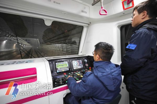 8號線一期空載試運行,列管員在駕駛臺值守保障。