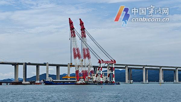 市域鐵路象山港跨海大橋主塔(左)封頂。