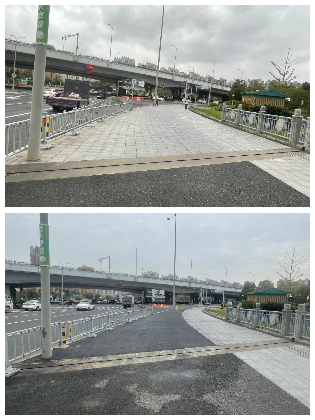 云飛路與洪都路交叉口、云飛路與機場北路交叉口的非機動車道下坡段原先采用花崗巖鋪裝,雨天十分濕滑,同時此處前方為紅綠燈路口,非機動車若急剎容易導致車輛打滑。