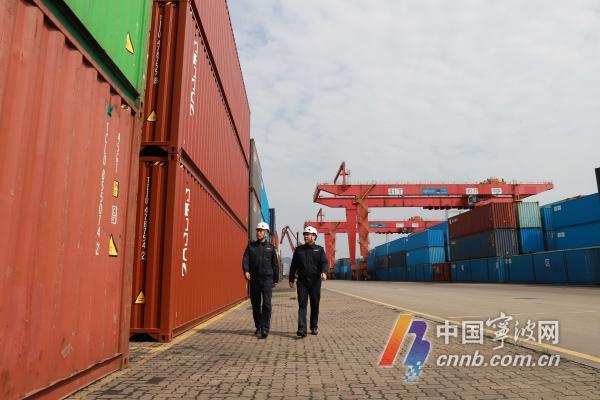 寧波海關關員對集裝箱查驗場地開展監管巡查。潘辰 攝