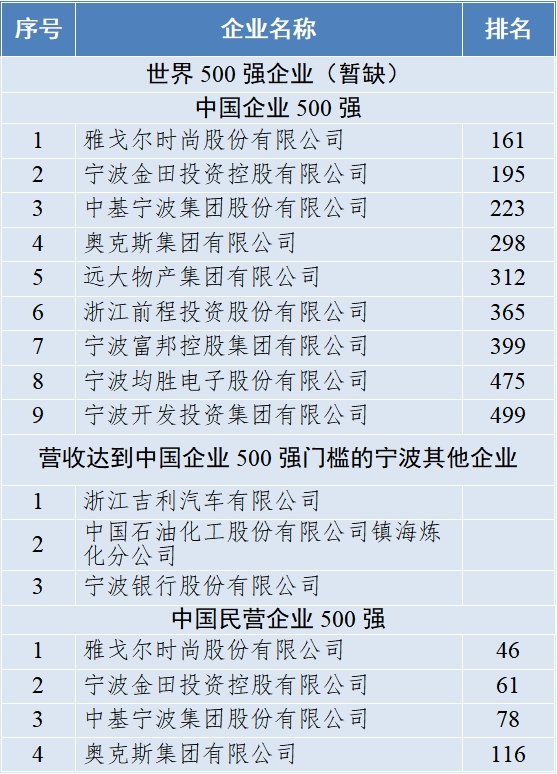 從中國企業(yè)500強(qiáng)看,2023年寧波入榜企業(yè)達(dá)9家,較去年新增1家。與此同時(shí),吉利汽車、鎮(zhèn)海煉化、寧波銀行營收也已超過中國500強(qiáng)入圍企業(yè)的門檻。