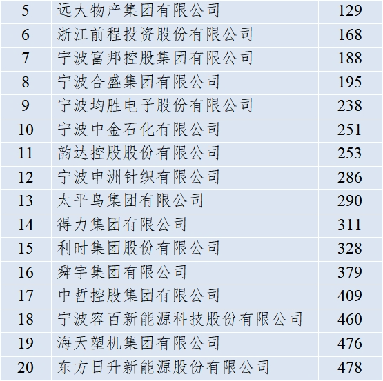 2023年度寧波市企業(yè)納稅20強(qiáng)名單