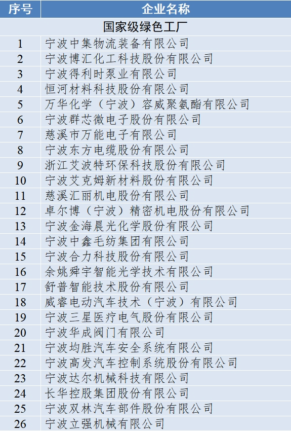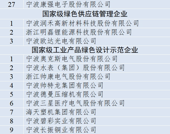 2023年度獲得國家綠色制造示范企業(yè)名單