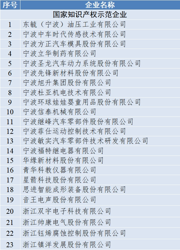 2023年度獲得國家知識產(chǎn)權(quán)示范企業(yè)和中國專利獎(jiǎng)企業(yè)名單
