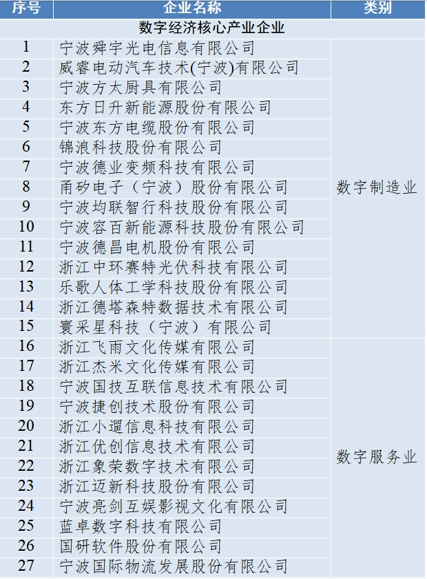 2023年度寧波市數(shù)字經(jīng)濟(jì)百強(qiáng)名單