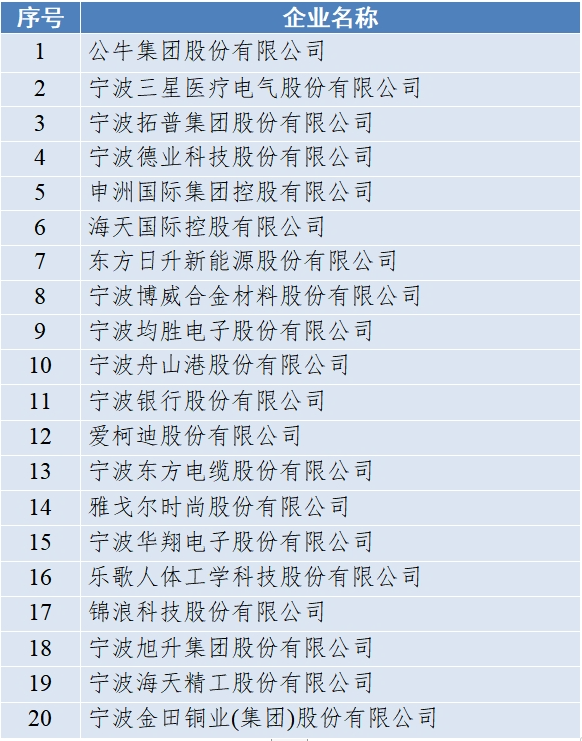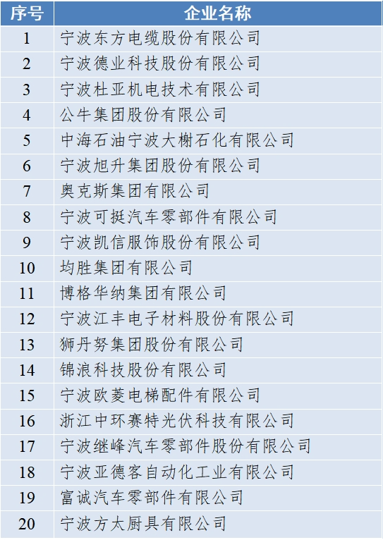2023年度寧波市工業(yè)企業(yè)畝均效益領(lǐng)跑者20強(qiáng)名單