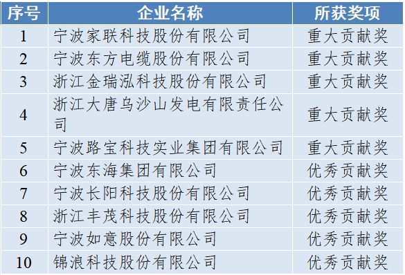 2023年度寧波市標(biāo)準(zhǔn)創(chuàng)新貢獻(xiàn)獎(jiǎng)企業(yè)名單