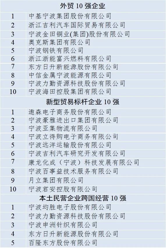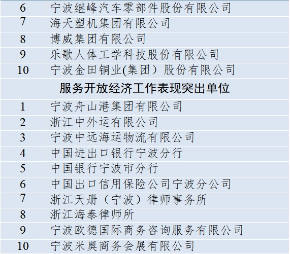 2023年度寧波市開放經(jīng)濟(jì)4個(gè)10強(qiáng)名單