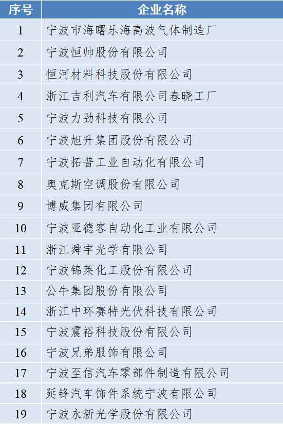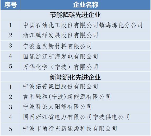 2023年度寧波市新能源化與節(jié)能降碳“十佳”企業(yè)名單