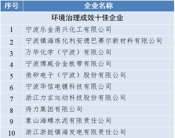 2023年度寧波市生態(tài)環(huán)境治理雙“十佳”企業(yè)