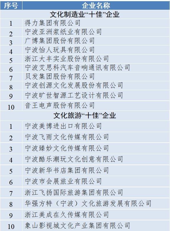 2023年度寧波市文化旅游雙“十佳”企業(yè)
