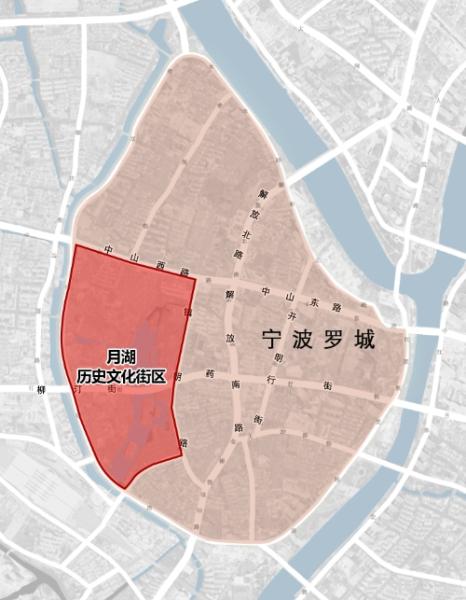 月湖歷史文化街區在寧波老城范圍圖。通訊員供圖